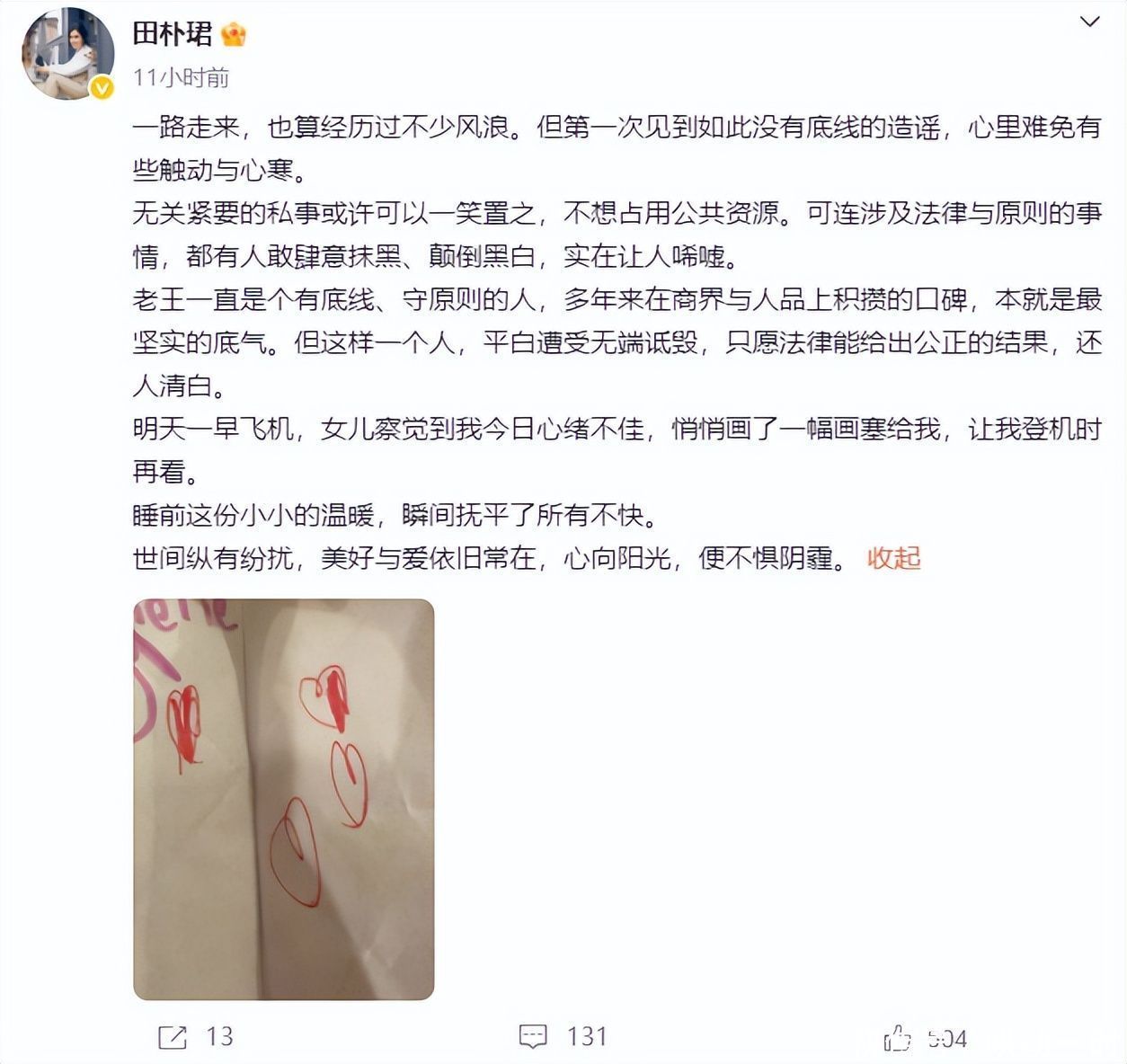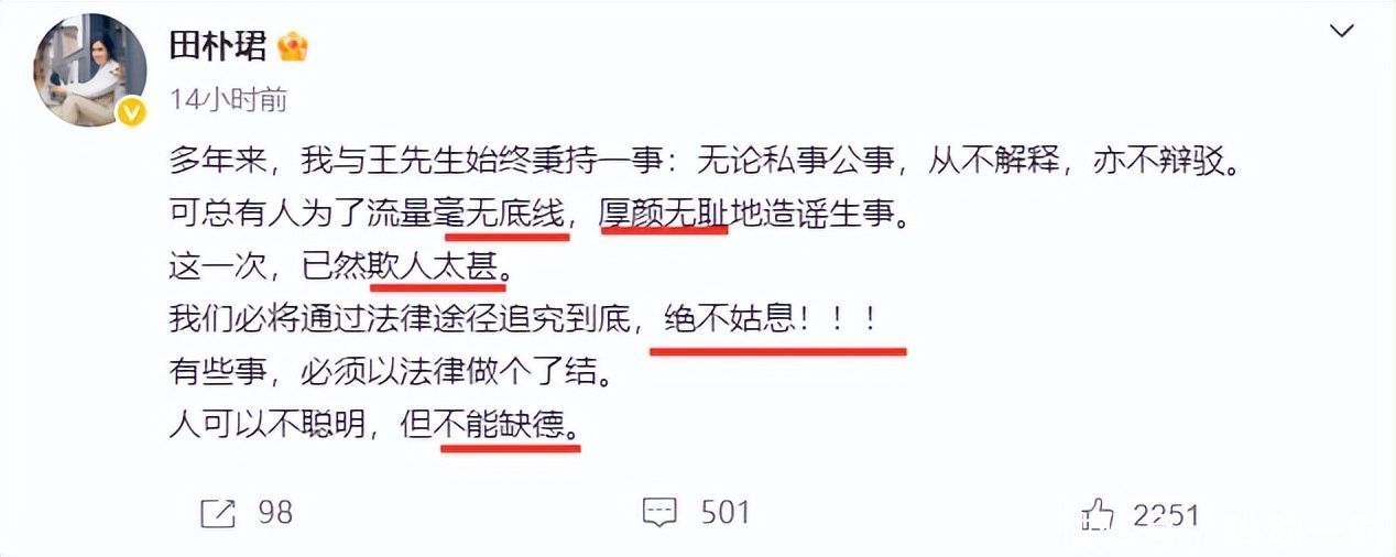 连妻子田朴珺也终于按捺不住,径直在社交平台发起严正诘问。